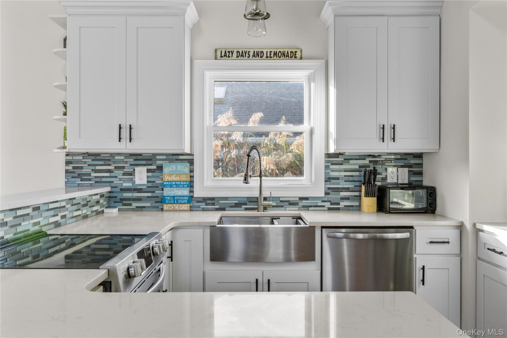 Ocean Beach home for Sale on Fire Island, NY – Move Right In! This charming Ocean Beach home for sale was completely renovated in 2021. Spacious and open great room, perfect for entertaining. Brand new kitchen with white cabinetry, stainless steel appliances, quartz countertops, breakfast bar and dining area. Hallway leads to three guest bedrooms, full bathroom and one primary suite with private bathroom. Ductless units in every bedroom and great room provide both AC & Heat. Outdoor entertaining is made easy with spacious deck, grill, and outdoor lounge set. Private outdoor shower on rear of wraparound deck, where you can also find extra storage closet & washer/dryer. Use this home for sale on Fire Island in Ocean Beach as an excellent rental investment or make it your home away from home! Conveniently close to ferry, shopping & dining. Only a 7 minute walk down to the beach! Schedule your showing today.