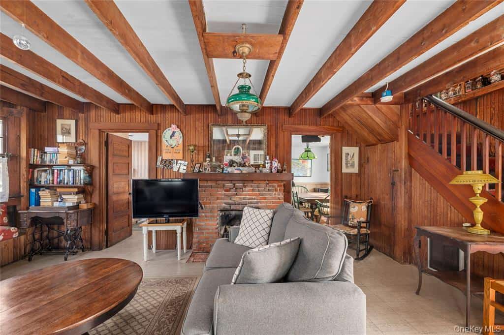 Ocean Beach home for sale on Fire Island, NY – A classic Fire Island gem! This original beauty offers four spacious bedrooms and one and a half baths, with generously sized rooms throughout. Step inside to a bright and airy living room featuring a cozy fireplace and a wall of windows with built-in seating, seamlessly flowing to the welcoming front porch—perfect for relaxed coastal living. The kitchen offers island seating and connects to a large dining room, ideal for entertaining, which opens to a charming enclosed back porch and out to the deck with an outdoor shower. Perfectly situated close to town, you’ll enjoy easy access to shops, dining, and the beach—an ideal blend of timeless charm and convenience. The house has been raised to FEMA regulations.