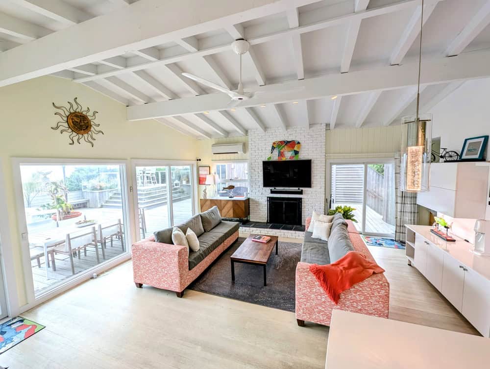 OCEAN FRONT SEAVIEW. 5 bedroom 2 bathrooms and 2 powder rooms. Gym, veggie garden, guest house (this is included in the 5 bedroom 1 half bath) chefs kitchen, laundry room, storage, dog run. This house is truly a home. Views, and privacy is rare on the ocean, yet this beauty has both. A true gem in the heart of seaview, with extra artistic style at every glance. Shade, sun, views, quiet, entertaining space, this deck has it all. You need to come tour this one, in order to really “get it”. 7×7 dunk pool can be added.